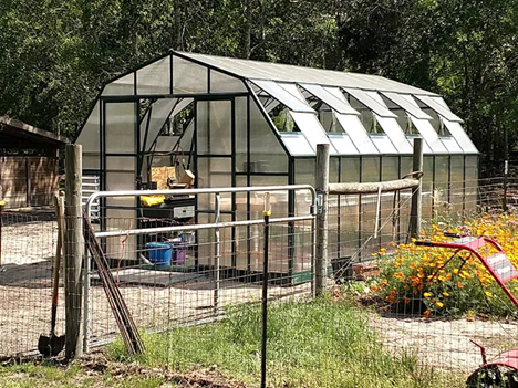 This beautiful barn-style greenhouse delivers year-round growing space with a heavy-duty aluminum frame and premium 10mm twin-wall polycarbonate panels. Your Summit greenhouse comes equipped with professional-grade features including 10mm twin-wall panels, a heavy-duty powder-coated aluminum frame, impressive 9.25′ tall roof height, re-engineered sliding double doors with lockable handles, (12) roof windows with ample ventilation, rain gutters, drain kit, extreme snow load kit, flat mount anchor kit, and comprehensive long-term warranties.